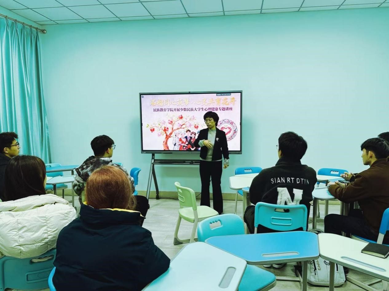 为促进各民族学生交融互鉴,筑牢心理健康防线,民族教育学院近日以“石榴同心筑梦·心灵共育花开”为主题,举办了一场对学院学生的心理健康专题讲座。活动通过知识科普、互动体验与文化共鸣,为少数民族学子送上了一场温暖的心灵盛宴,彰显了学院在民族团结进步教育中的创新实践。
