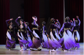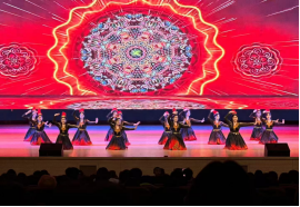 晚会在维吾尔族舞蹈《西域之魂》中拉开序幕,男女混跳的形式再现民族节庆欢腾景象,炙热奔放的舞姿瞬间点燃现场氛围,彰显出各民族文化的鲜活活力;冬不拉与吉他跨界演绎的《你清澈的眼眸》,让传统与潮流深情牵手;蒙古族舞蹈《蒙古印象》以刚劲舒展的动作,展现草原儿女的豪迈胸襟;古筝与舞蹈融合的《伯虎说》,将古典诗词之美与舞蹈美学完美交融;哈萨克族舞蹈《梦之乡》《黑走马》轮番登场,柔美与刚劲兼具,尽显草原文化的独特韵味。